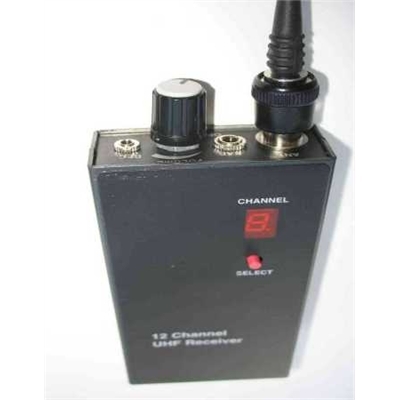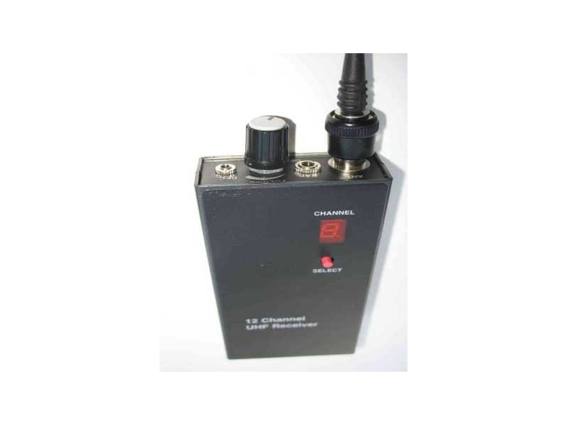 This is our UHF receiver required to receive the signals from all the transmitters listed on this page. It is a high gain 12 channel receiver with excellent sensitivity. It operates from a standard PP3 battery which lasts for up to 4 day's continual use and can connect easily to any type of recorder with the suppiled recording lead .